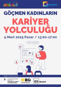 Gemeinsam mit MGA – Münih’li Göçmen Anneler laden wir von Aktiv & Bunt für München zu einer inspirierenden Informationsveranstaltung ein: „Karriere-Reise von Migrantinnen“.
